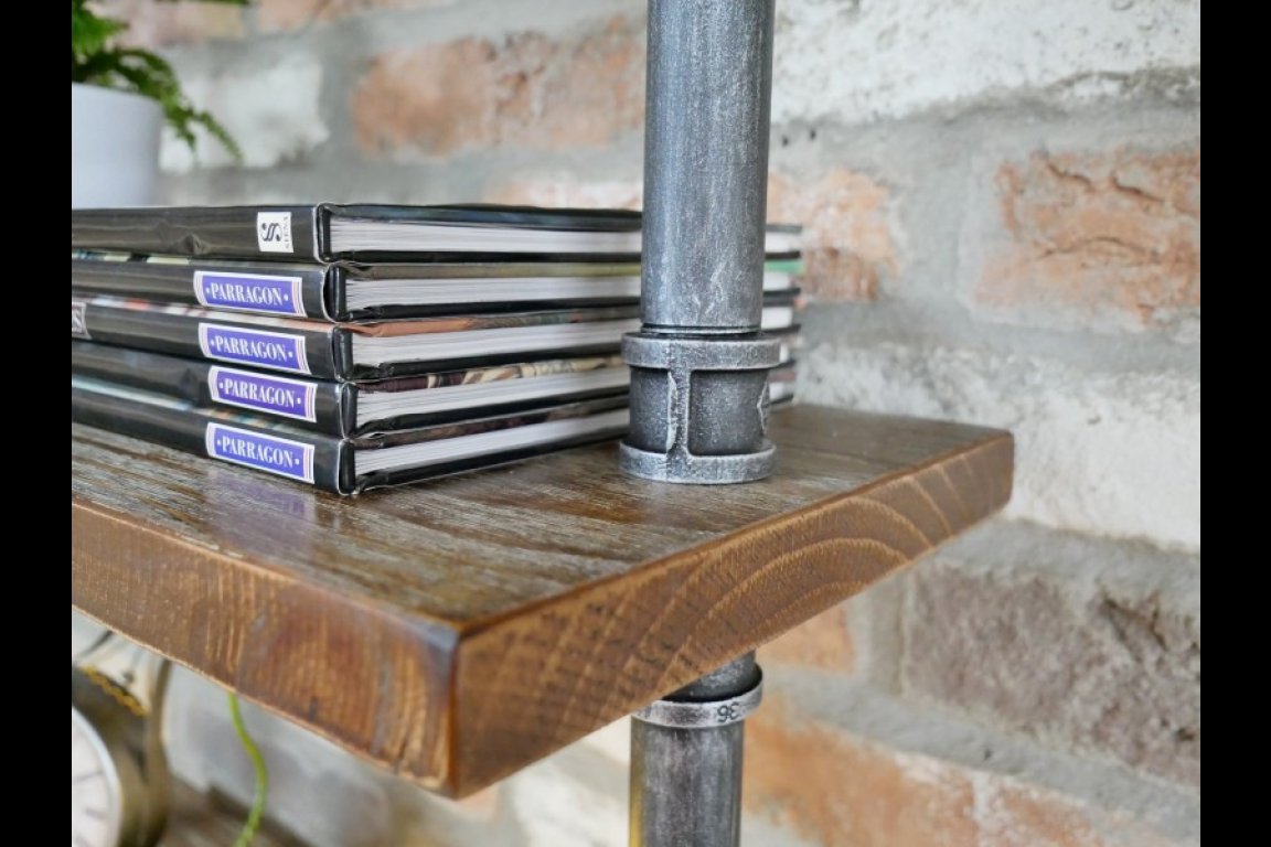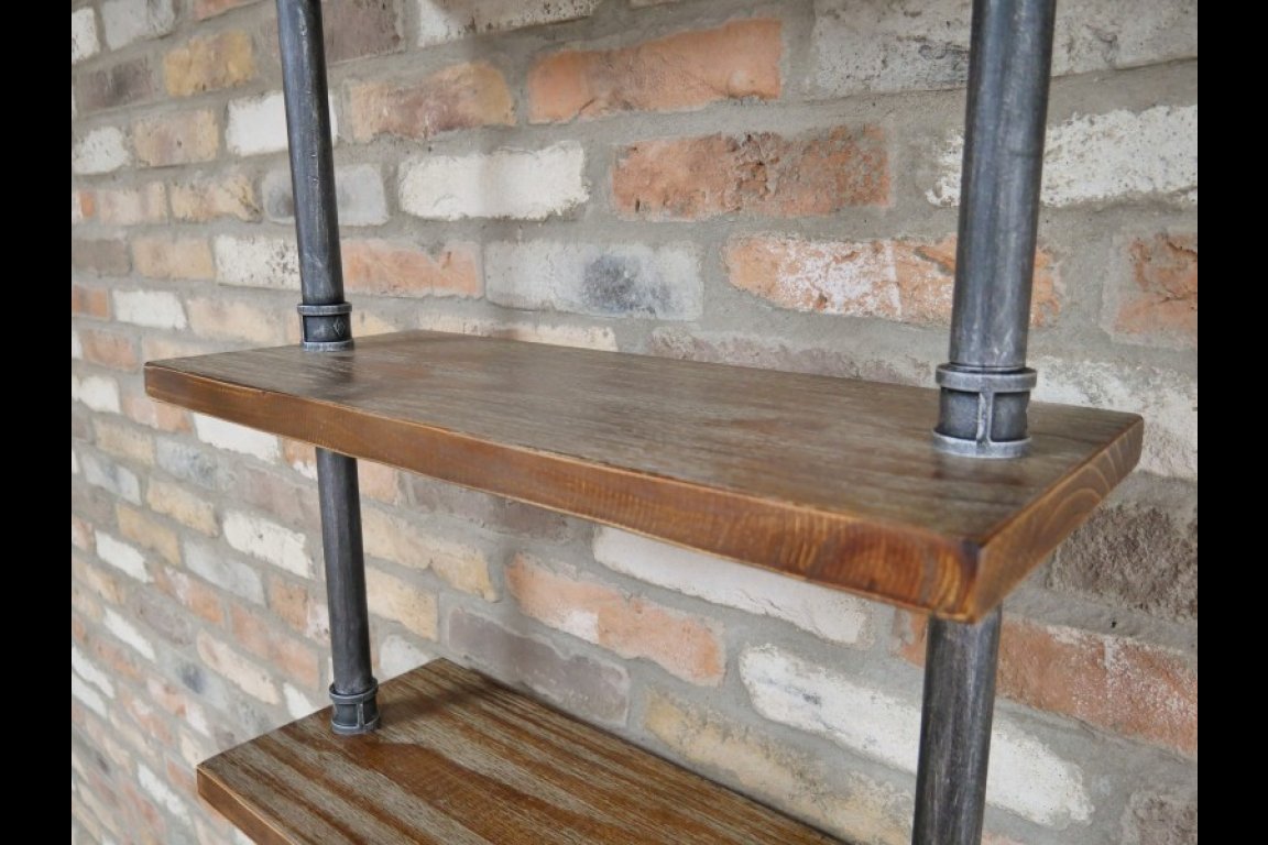 Pipes are made from steel, shelves are made from wood. This is a KD item which requires assembly.