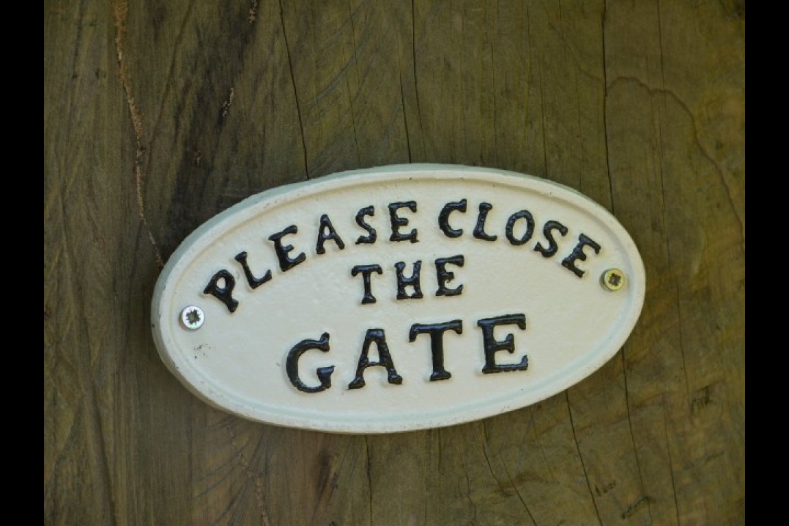 Sign-Pls Close The Gate (White)